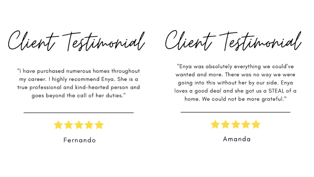 Enya is known for going above and beyond for her clients, demonstrating an unwavering commitment to their needs. She has been known to cancel personal trips to be present for crucial inspections, providing peace of mind during the buying process. Her dedication extends to unique situations, such as volunteering to clip chicken talons at a home her clients were set to receive as part of their purchase. This level of personal investment showcases her willingness to do whatever it takes to support her clients and make their real estate experience as smooth, enjoyable, and memorable as possible.